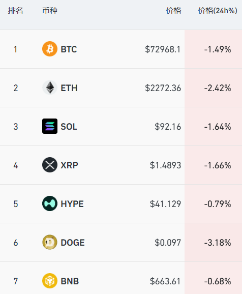 加密货币方面,主要币种集体下挫,比特币跌破73000美元关口,据Coinglass显示,过去24小时,全市场超9万人爆仓。